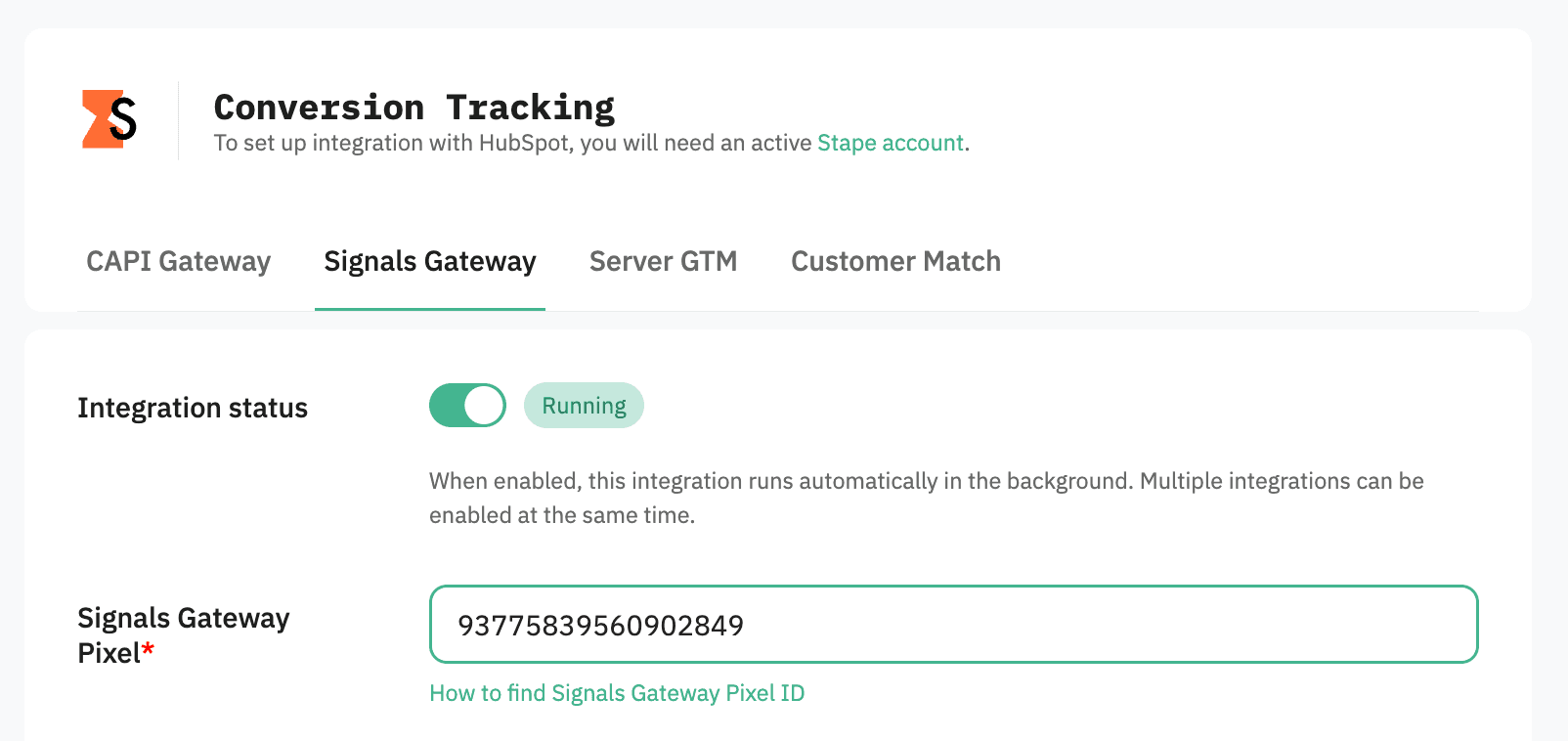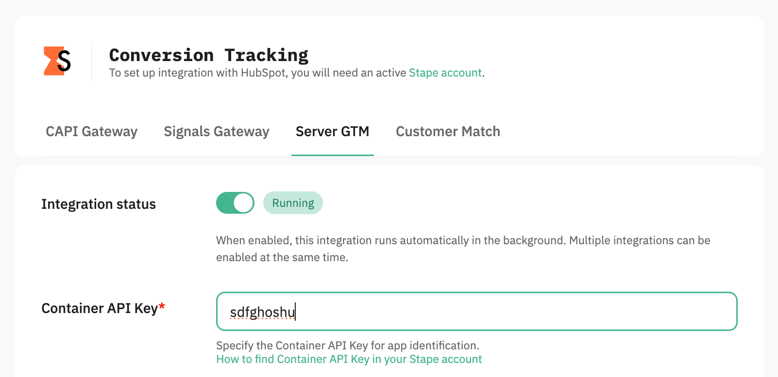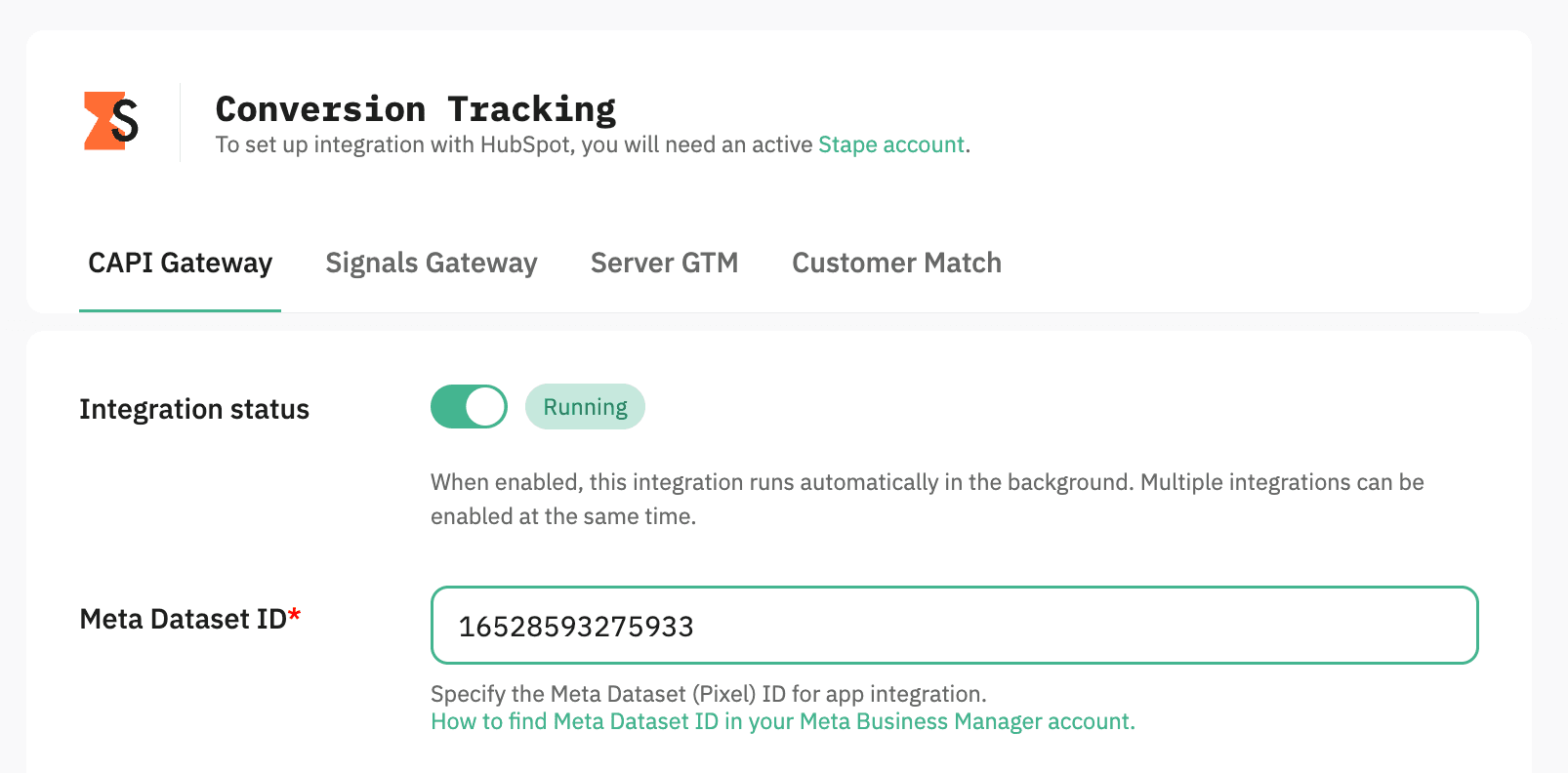 Using the Stape Conversion Tracking HubSpot CRM app is a convenient and easy way to configure sending data on Contacts' statuses from HubSpot to Meta, Google Ads or other platform. To start using the app, you need to have the Stape account and configure one of the server-side tracking methods - server GTM, Meta Conversios API Gateway, or Signals Gateway.