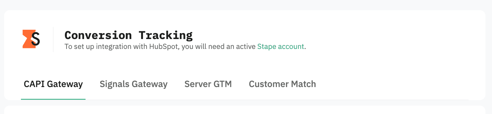 Install the Stape Conversion Tracking HubSpot app on HubSpot's marketplace.