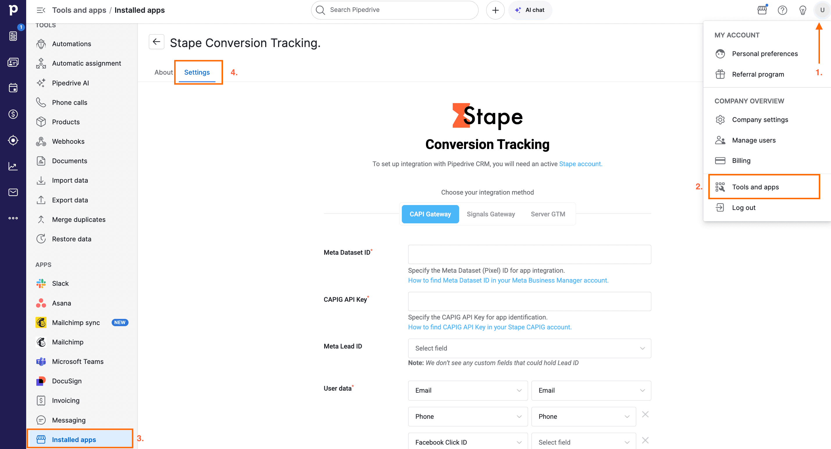 Install the Stape Conversion Tracking Pipedrive app by following this link.