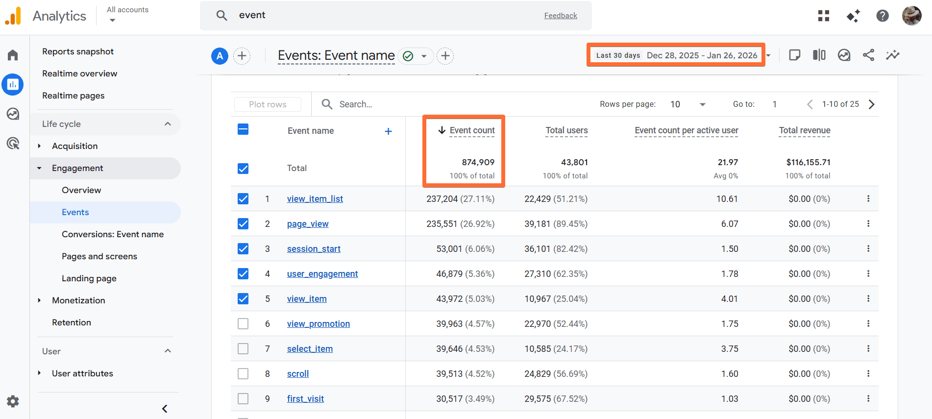 Where to get the total number of GA4 events?